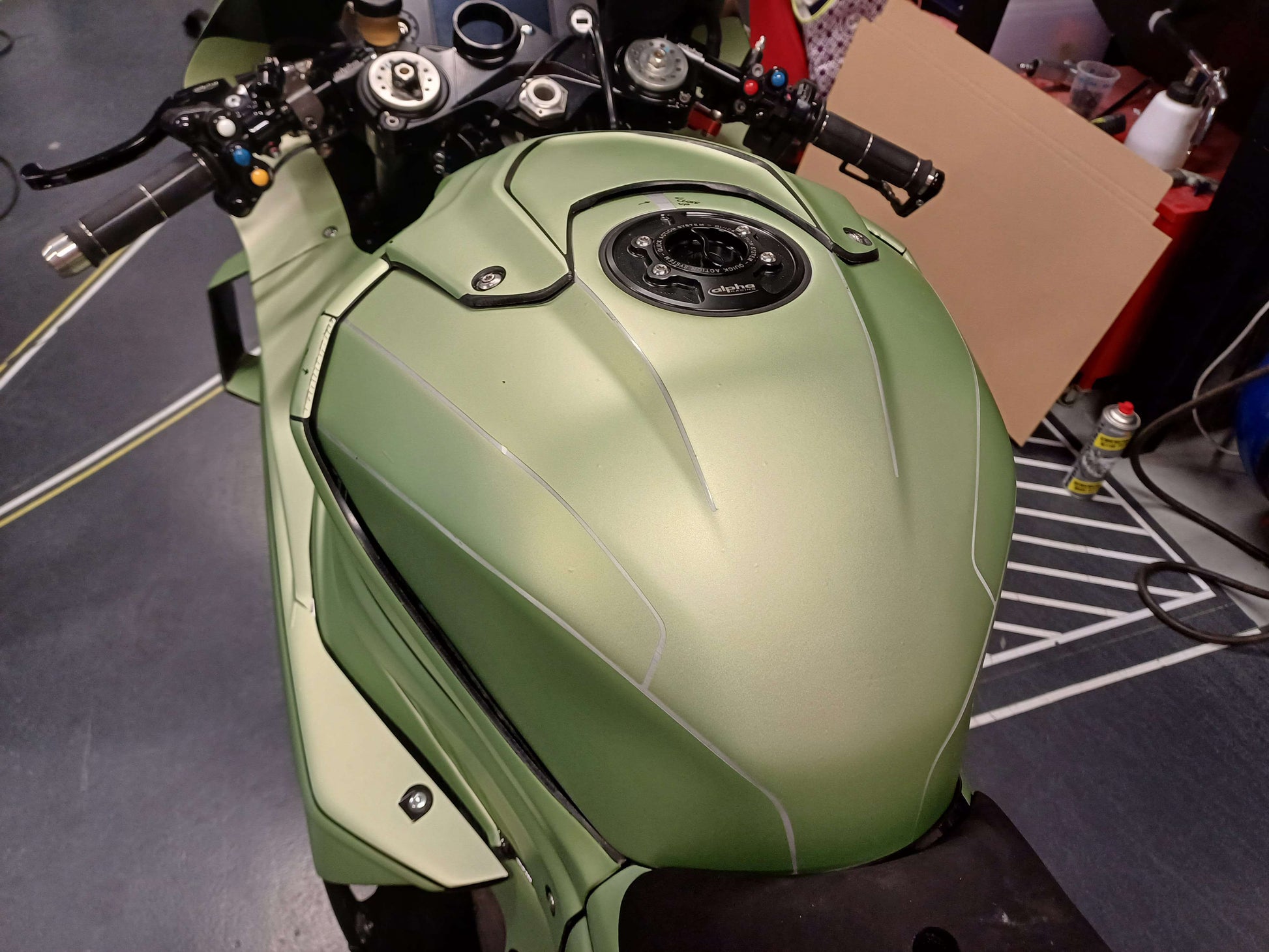 Note: When applying this template, make sure that you use a quality cast vinyl that can conform to curves. The template itself looks tricky because the 3D shape doesn’t translate too well to a 2D shape, causing parts to overlap (which do not overlap on the real fairings). Check out our fitment images to see how the parts go and how they should fit. It is recommended to not cut out the holes for the bolts as they will be slightly different on every fairing.